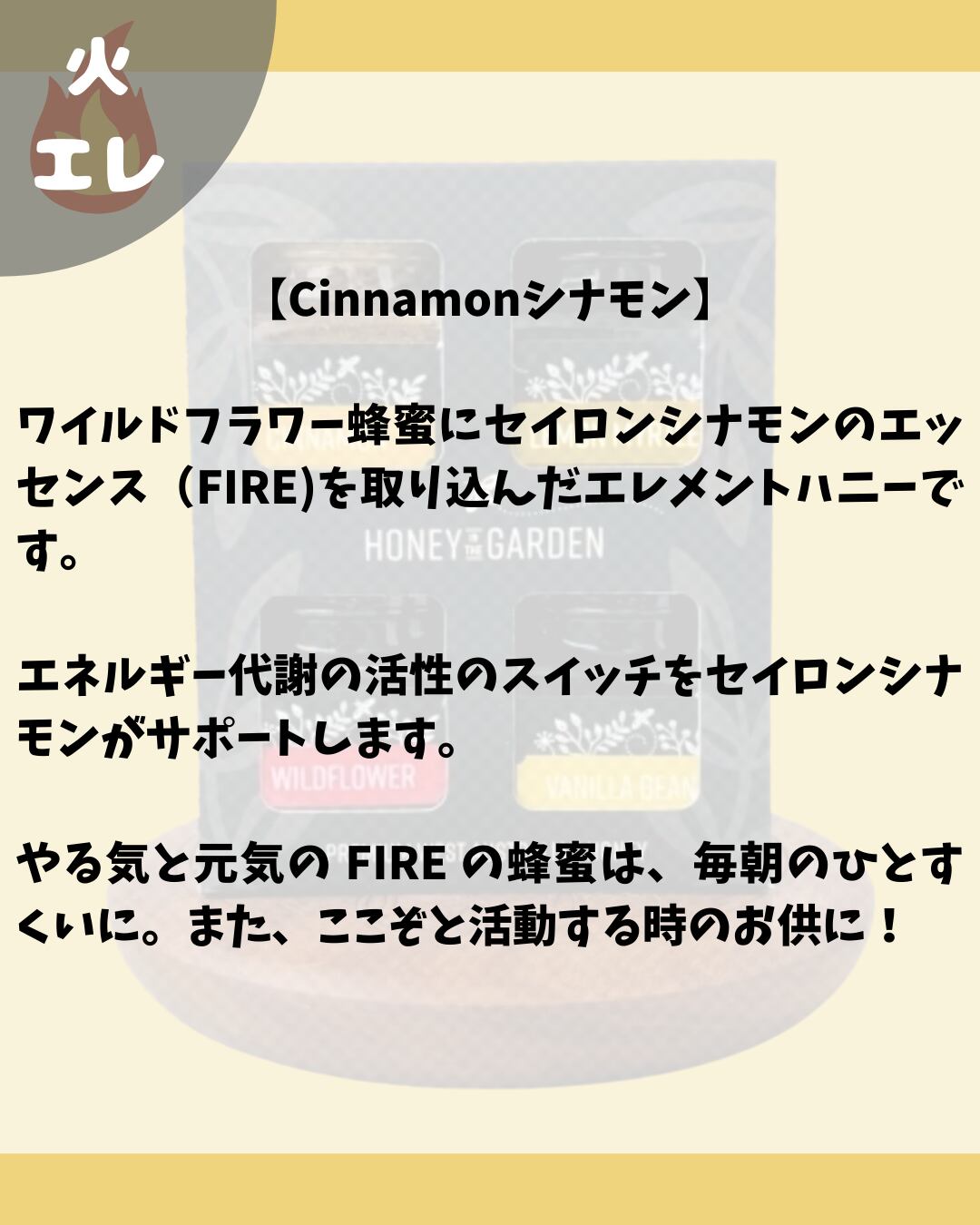 ワイルドフラワー蜂蜜にセイロンシナモンのエッセンス(FIRE)を