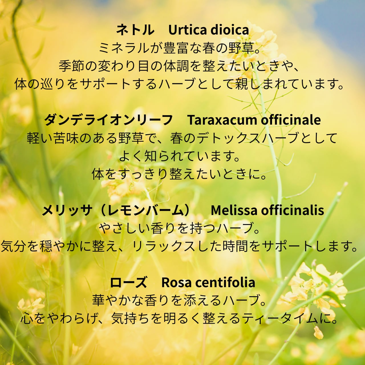 ネトル / ダンデライオンリーフ / メリッサ / ローズ